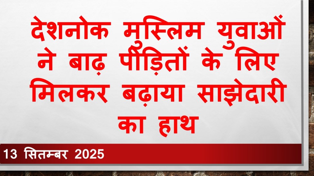 देशनोक के मुस्लिम समाज के युवाओं ने बाढ़ प्रभावित लोगों के लिए मानवीय पहल की है। 10 सितंबर की रात लगभग 10 बजे मदरसा सुल्तान उल हिंद में एक बैठक रखी गई जिसमें राजस्थान मुस्लिम तेली महासभा जिला देहात अध्यक्ष अनारदीन गौरी ने कहा कि पंजाब में आई तबाही को देखते हुए मुस्लिम समुदाय की ओर से मिलकर कुछ करने की ज़रूरत है। तीनों मोहल्लों — चुंगी मदरसा एरिया, नई मस्जिद एरिया और पुरानी मस्जिद एरिया — के युवाओं ने इस मुहिम का समर्थन किया।